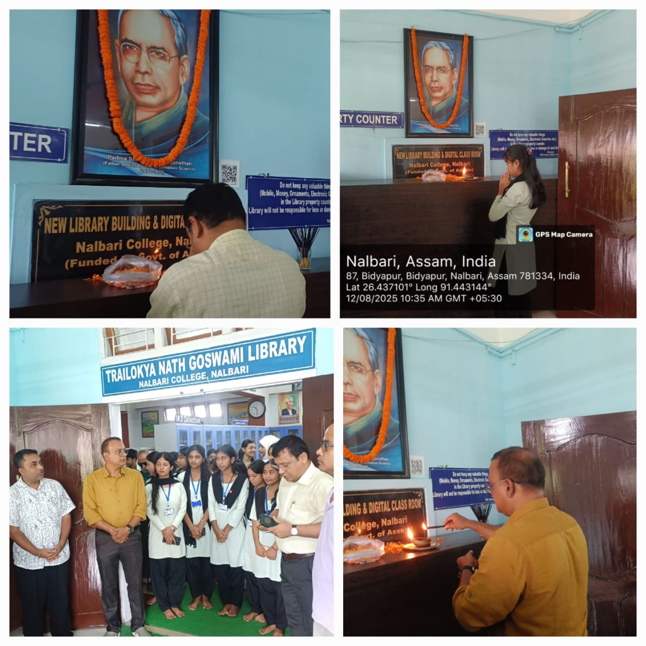 | 3 | Librarians’ Day Celebration, 2025 (12th August 2025) | The 133rd birth anniversary of Dr. S. R. Ranganathan, the father of Library Science in India, on 12 August 2025 was observed by Trailokya Nath Goswami Library in association with IQAC Nalbari College, Nalbari. The programme was started with lightening of lamp and floral tribute to Padmashree Dr. S. R. Ranganathan . Then the programme began with a speech by Dr. Kamal Nayan Patowary Principal Nalbari College, Nalbari where he expressed about the importance of Library and Reading habits which is the need of hour. Sri. Ananta Rajbongshi, HOD Physics and Incharge Nalbari College Students Union along with the members of Union Body were present in the occasion. Almost 60 participants from the faculty members, Students as well as from College staff, of Nalbari College took part in the programme, where Dr. Ranjan Jyoti Sarmah, Librarian briefed the gathering about the significance of the occasion. The event was coordinated by Dr. Ranjanjyoti Sarmah, Librarian, Nalbari College, Nalbari. |  |